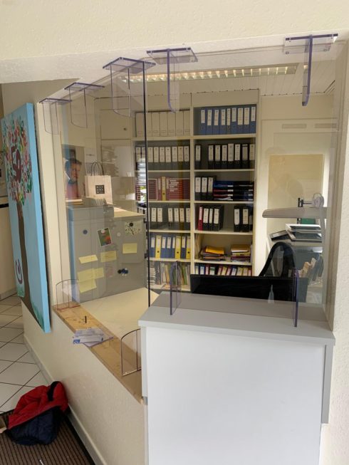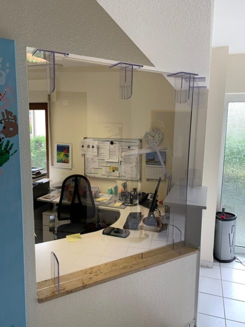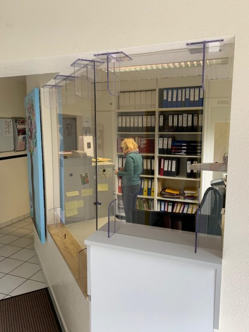 In Zeiten von Corona helfen wir Unternehmern im Rheinland mit Corona-Schutzwänden aus Plexiglas, die wir individuell an Empfang, Kasse oder an benötigten Stellen anbringen. Alle Teile fertigen wir passend auf Maß um einen professionellen Look und bestmögliche Sicherheit bieten zu können.